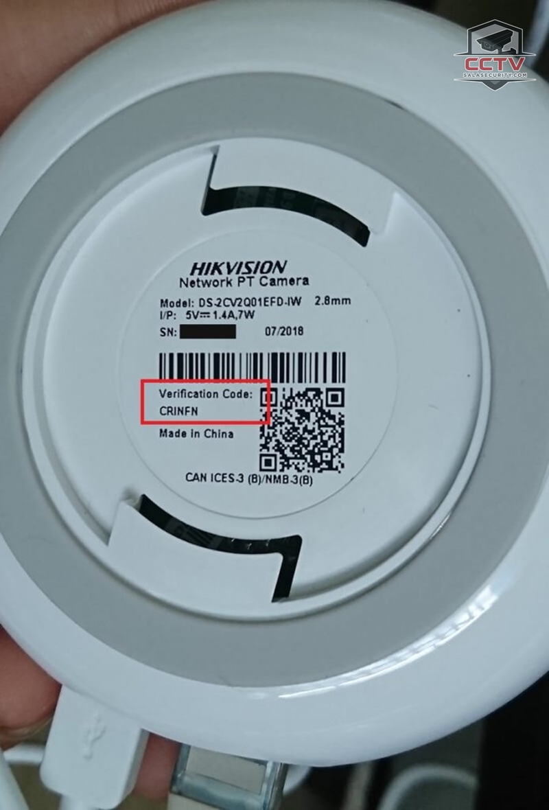 - Tem nhãn: Đa số camera Hikvision đời cũ hoặc dòng phổ thông đều dán sẵn mã Verification Code gồm 6 chữ cái viết hoa trên tem bạc dán ở thân máy (thường ghi là Verification Code hoặc V-Code).